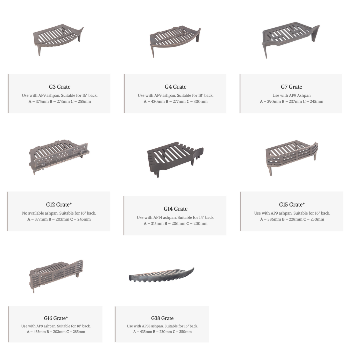 Restore the efficiency and performance of your open fire with our range of replacement cast iron grates. Designed to allow air to circulate beneath coals or logs, these grates help your fire burn hotter and more efficiently.