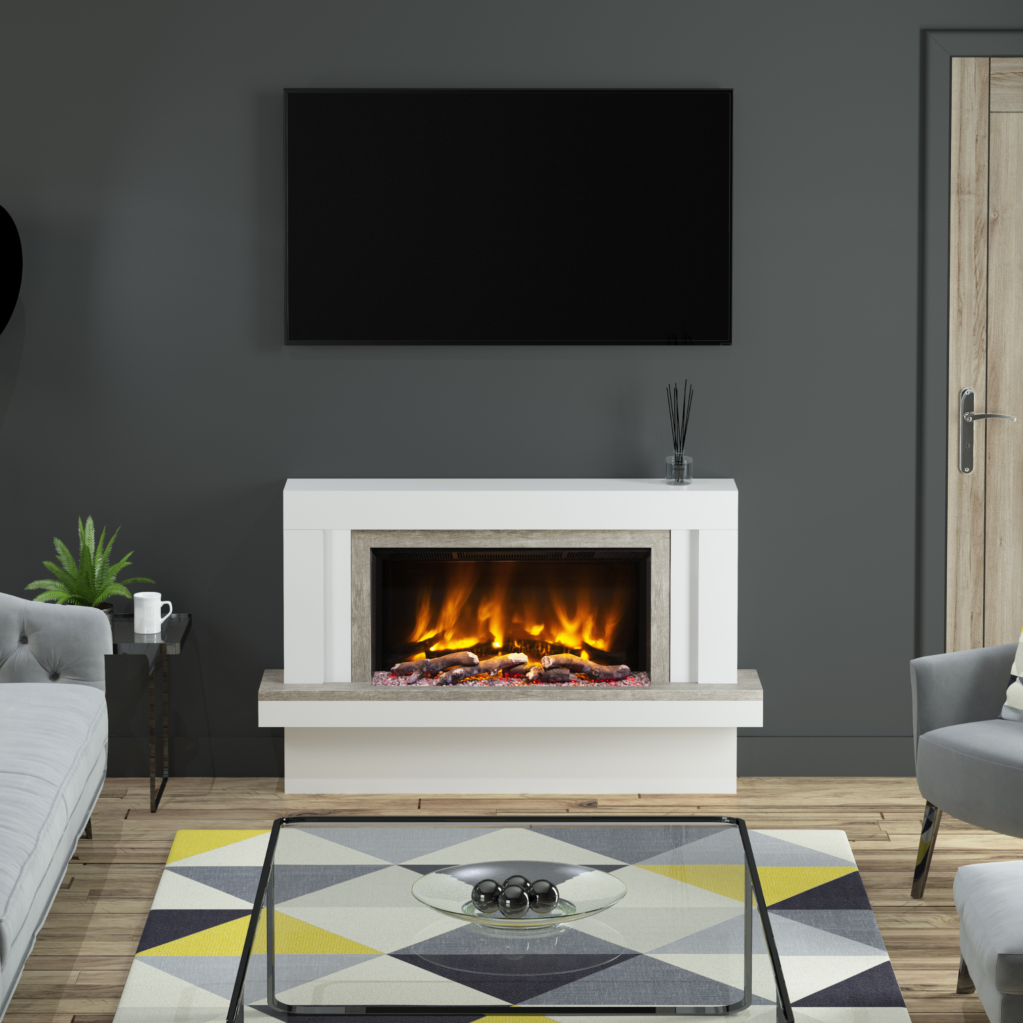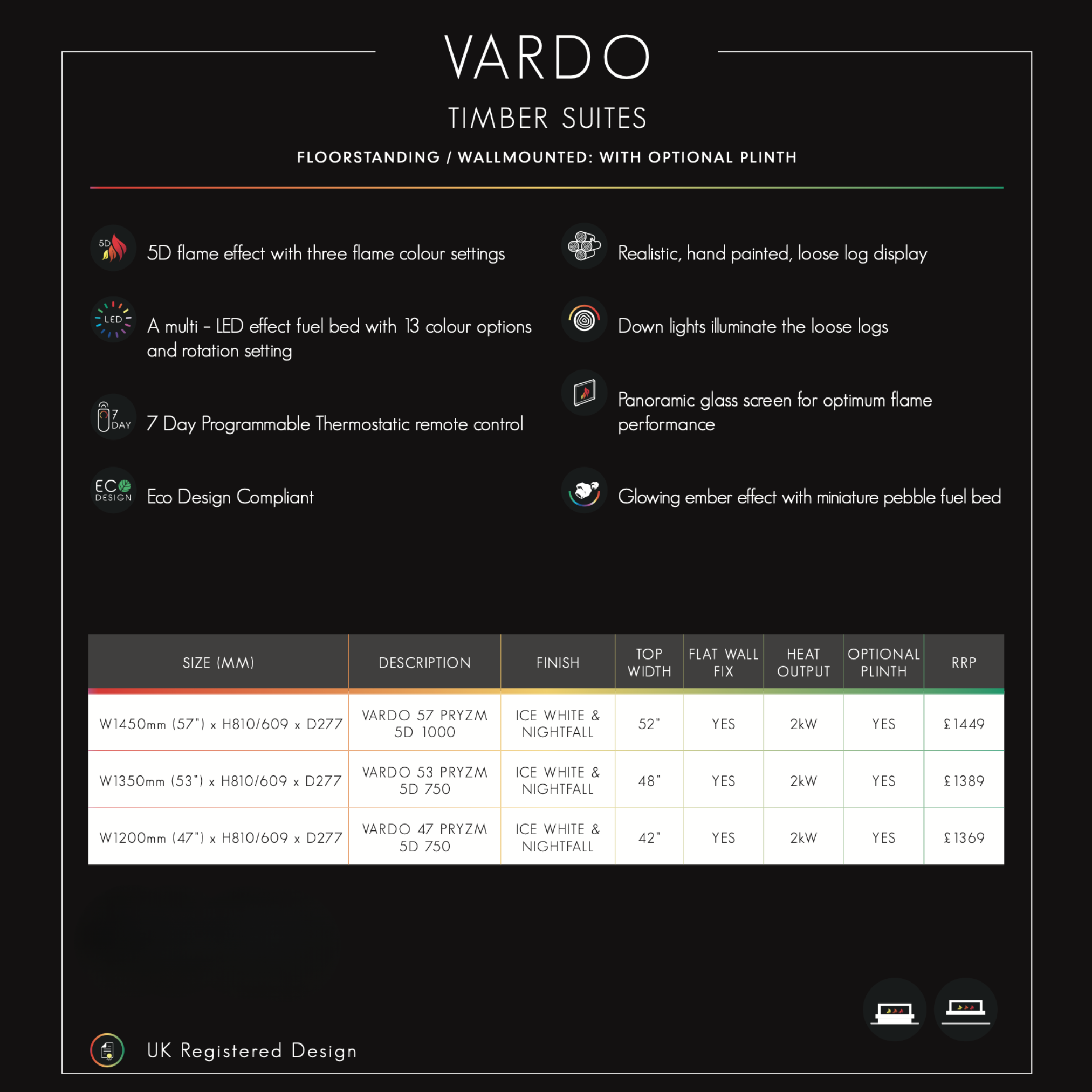 Pryzm Vardo Timber Floor Mounted Fire and Fireplace Suite