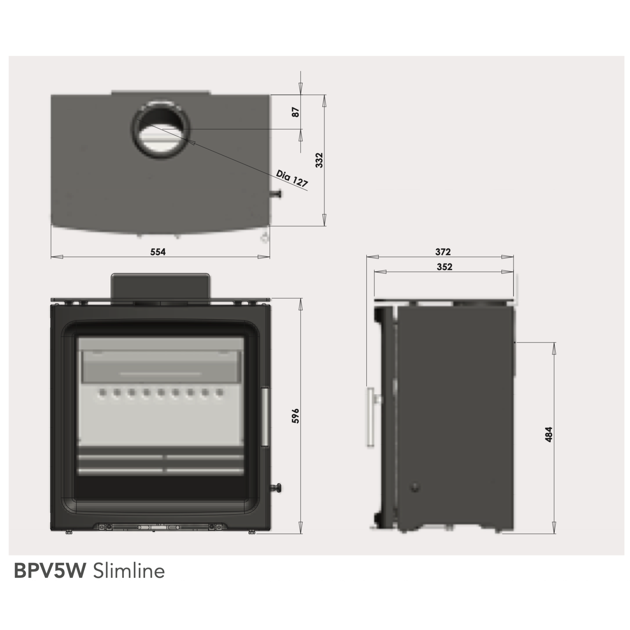 The 5kW Wide is an option in the 5kW range where you have more space to accept longer logs, but still want to keep with the 5kW stove power output. If you want a 5kW stove with the same width and large glass viewing area as the Wide model, but with a shallower depth, then our BPV5W Slimline is perfect for your needs.