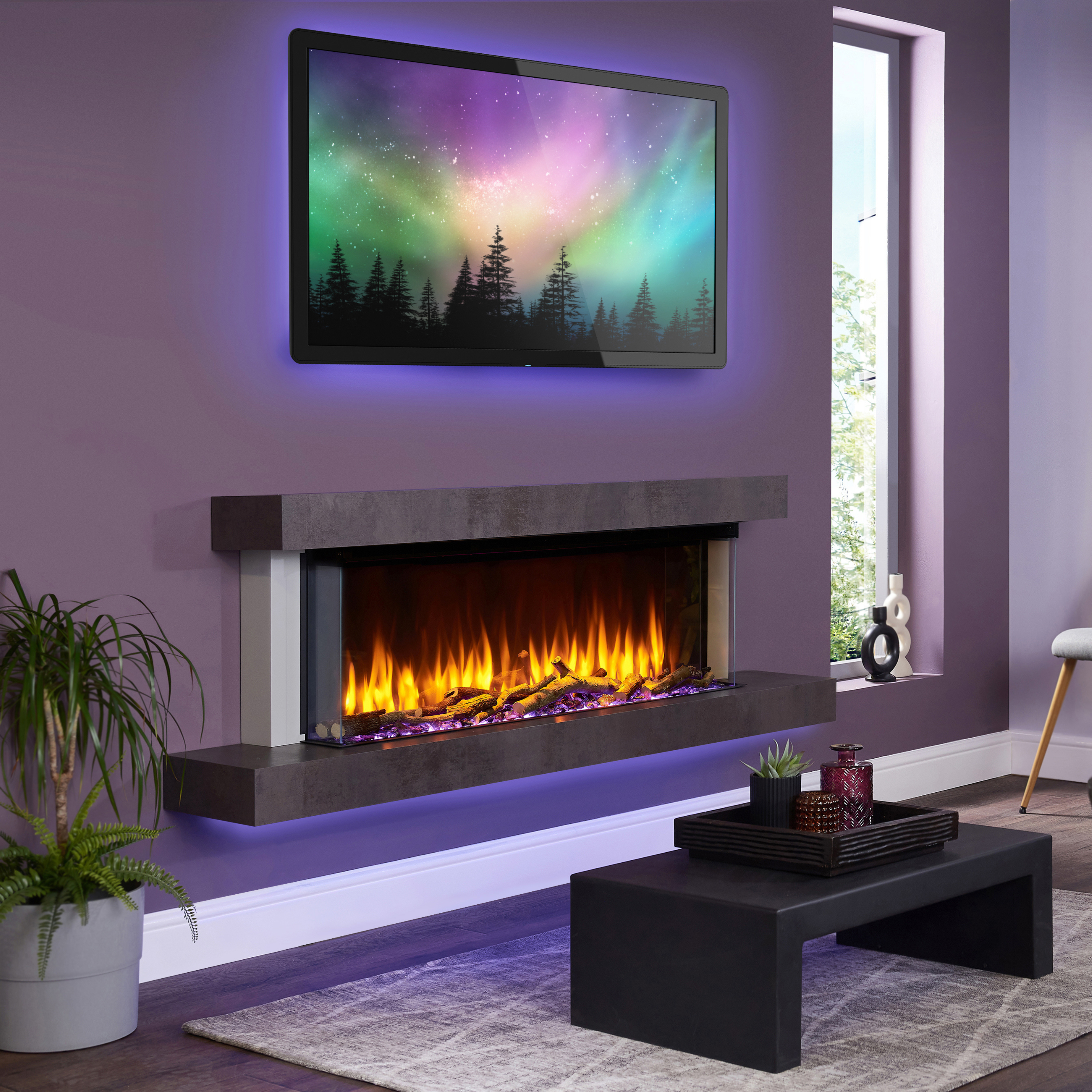 - Optional LED Lighting – Create the right mood in your room by lighting the area surrounding your fire, optional lengths of LED lighting strips are available that plug into your fire and you can run in your fireplace or build into the wall. The lights are controlled from the fires handset and offer you a palette of thirteen glorious colours that can be set separately to the flame and fuel bed effects (they can also be set to the same colours).