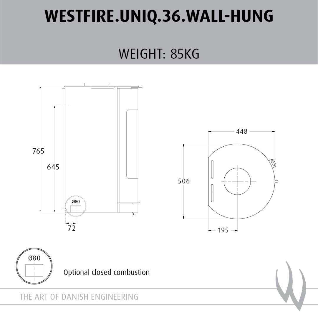 Uniq 36 Wall Hung 7.2kW Woodburning Stove - Westfire