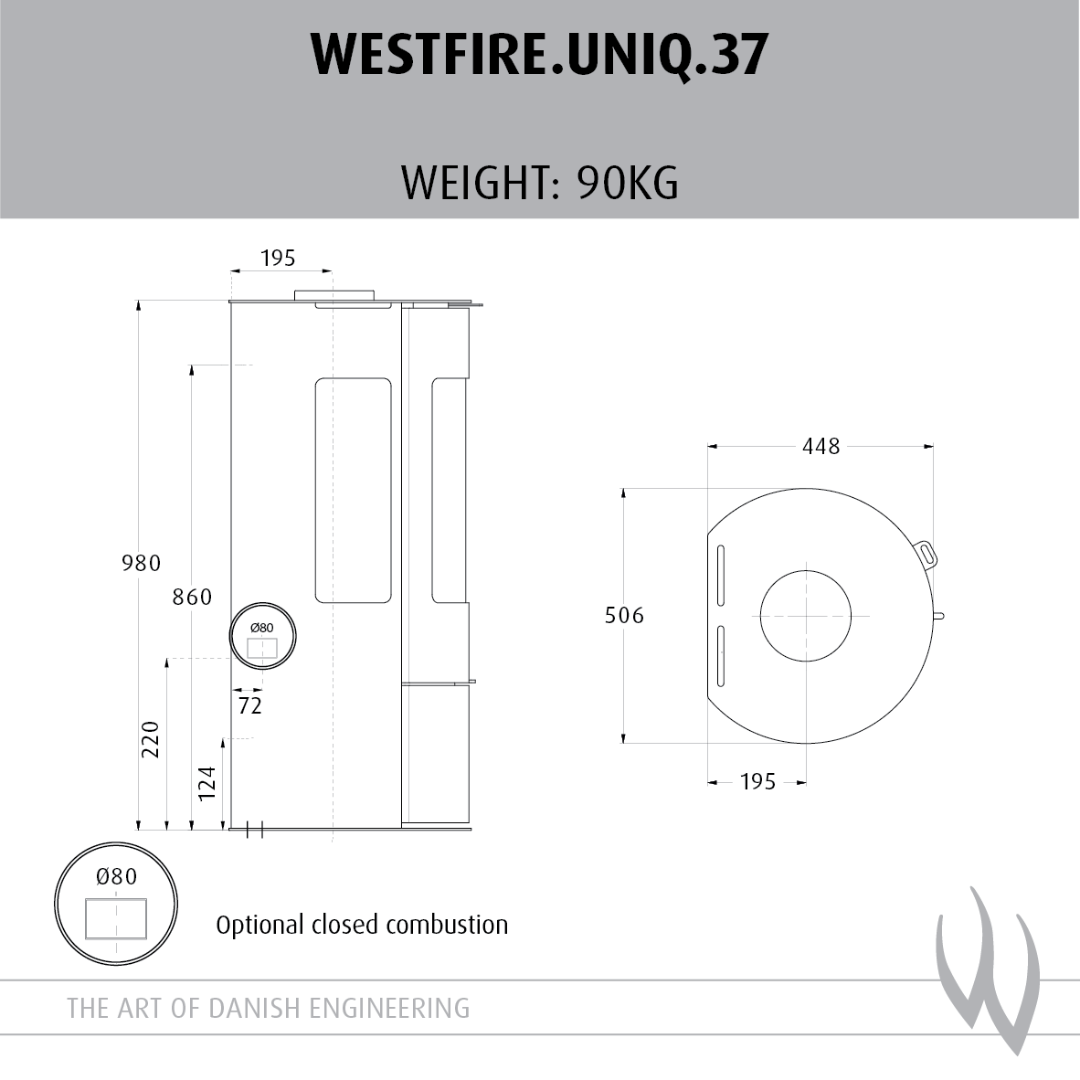 The Westfire Uniq 37 Eco-design delivers a stunning combination of panoramic flame visuals, efficient clean-burning performance, and bold Scandinavian styling — making it a true centrepiece stove for modern homes.