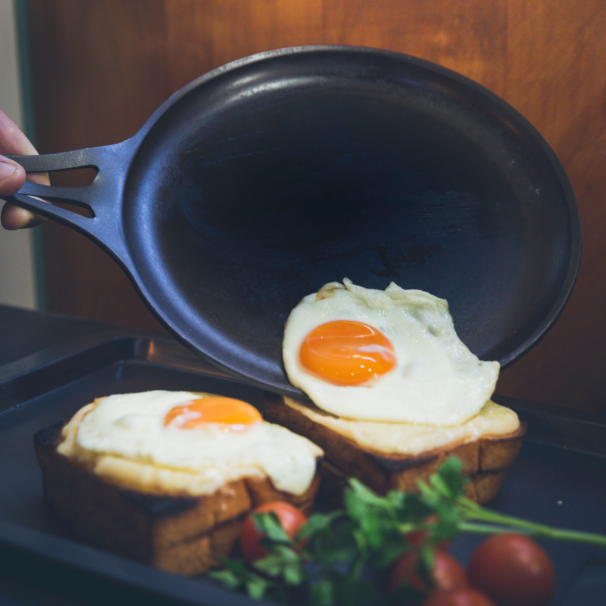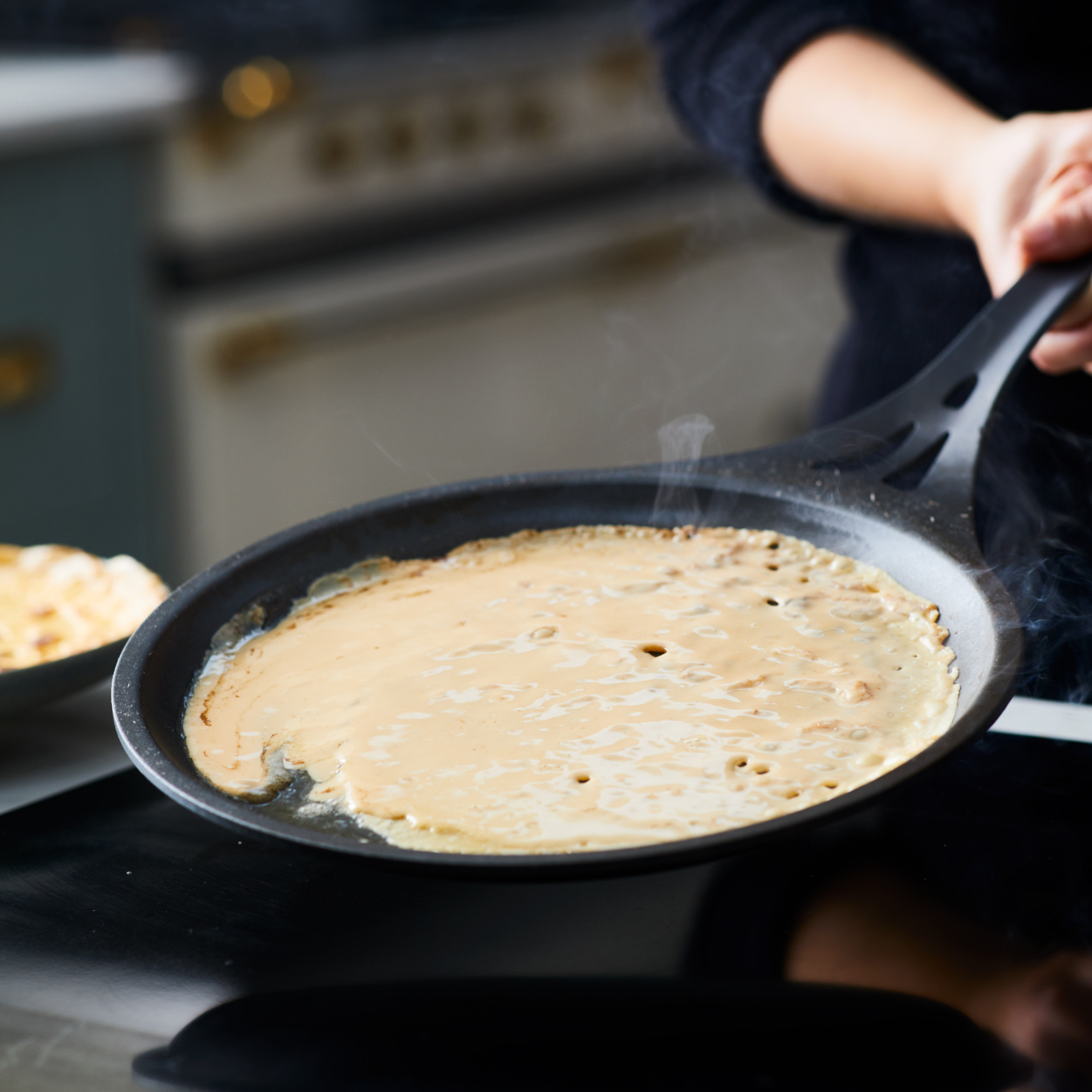 The 24cm pre-seasoned Crêpe Pan is a standout in the range. While it’s naturally perfect for pancakes and crêpes, its low sides and generous surface area make it equally suited to cooking foods that need easy flipping - such as flatbreads, fish or eggs. Its lightweight yet solid build and responsiveness to heat make it a favourite for both professionals and home cooks alike.