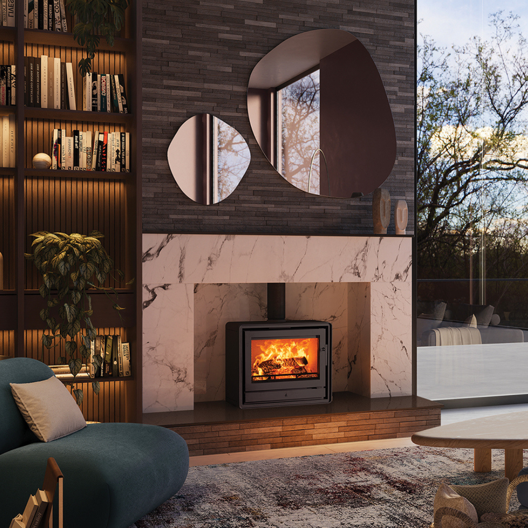 With an impressive 8.1kW heat output, this stove is suited to larger rooms and open-plan living spaces. Its wide proportions and expansive viewing window create a bold focal point, while advanced combustion technology ensures efficient, Ecodesign-compliant performance.