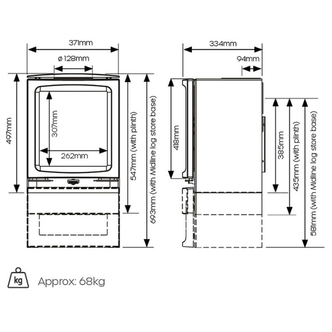 - Available as a standard stove, plinth model, or Midline log store version