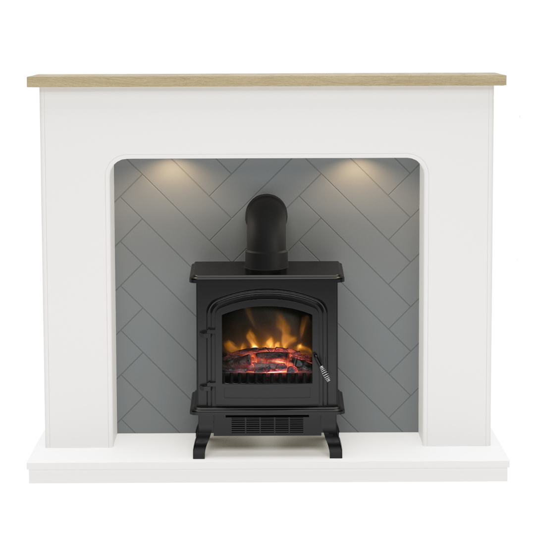 Designed to work with any standard freestanding electric stove, Cheshire offers the inglenook look without the building work. It fixes flat to the wall for a quick, efficient installation, and includes under-mantel LED lighting to add a soft glow and enhance the fireplace feature day or night. Proudly designed and made in Britain, it’s a standout surround that delivers depth, presence, and effortless style.