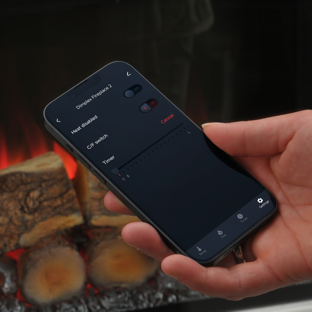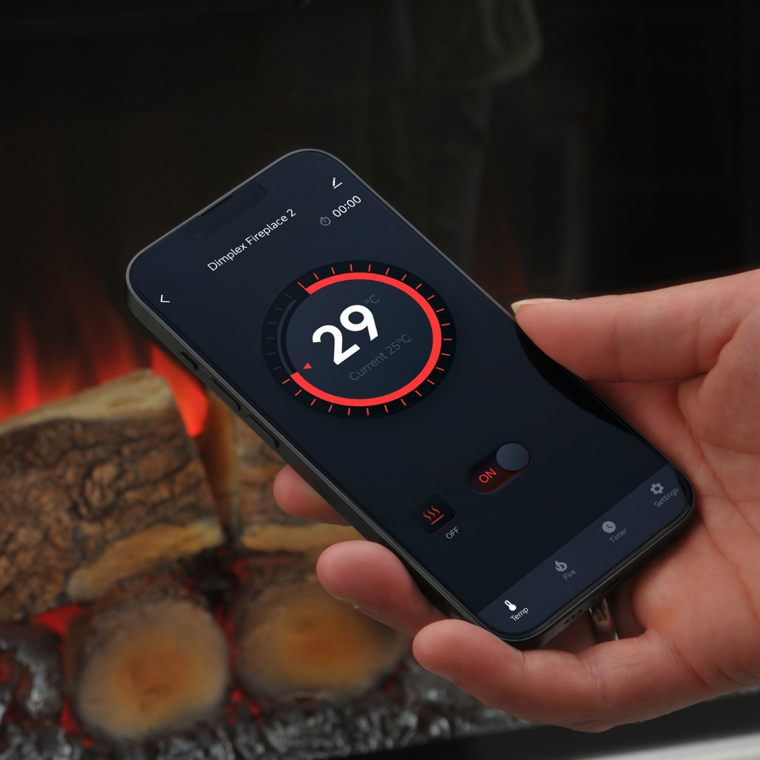 Adjust heat, flames and settings with ease using the remote control, the fire’s onboard controls, or the Glen Dimplex Connect App on your smartphone.