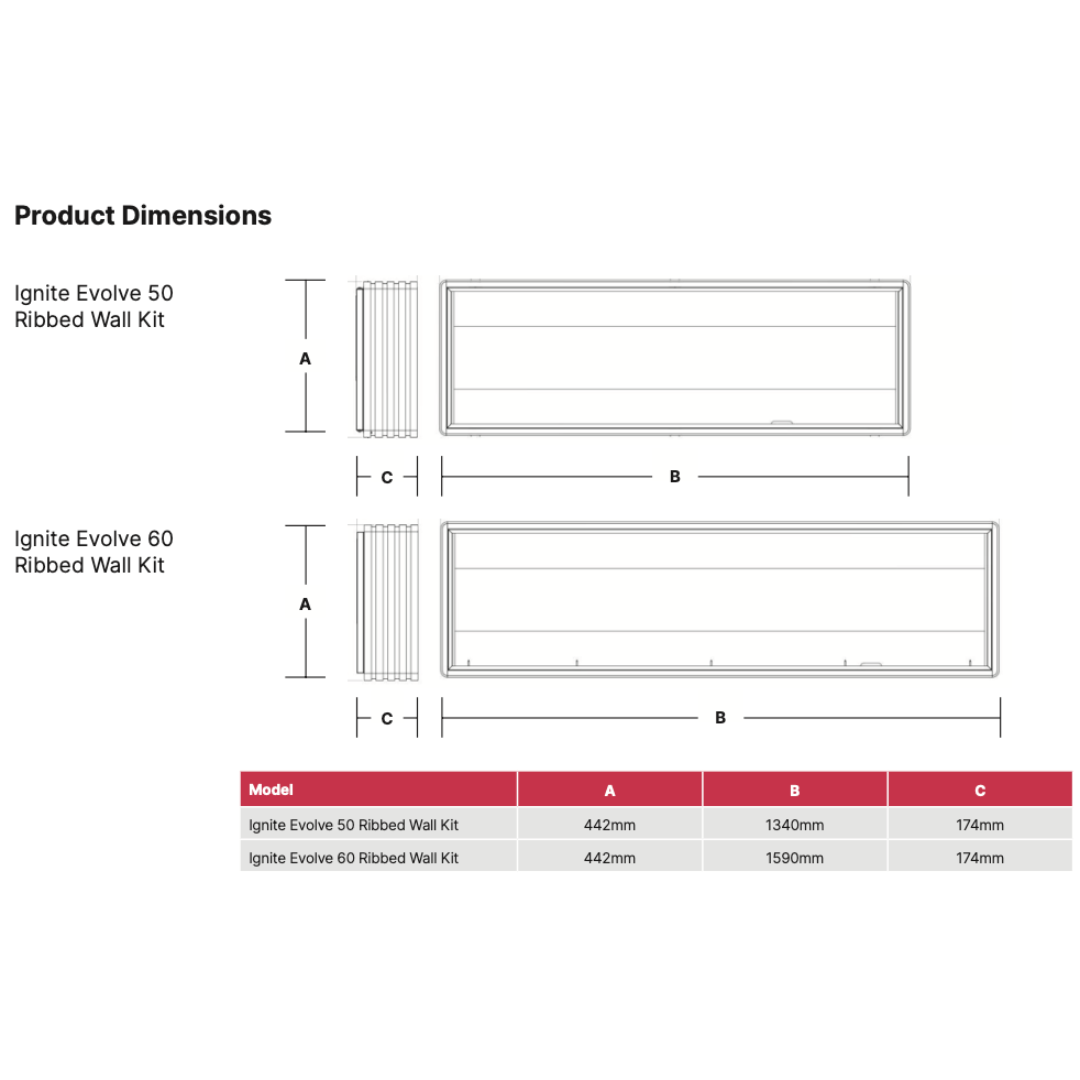 The Dimplex Ignite Evolve with Rib Wall Panel Kit is the ideal solution for those seeking a modern electric fire feature with strong visual impact, straightforward installation, and a beautifully finished wall-mounted design.