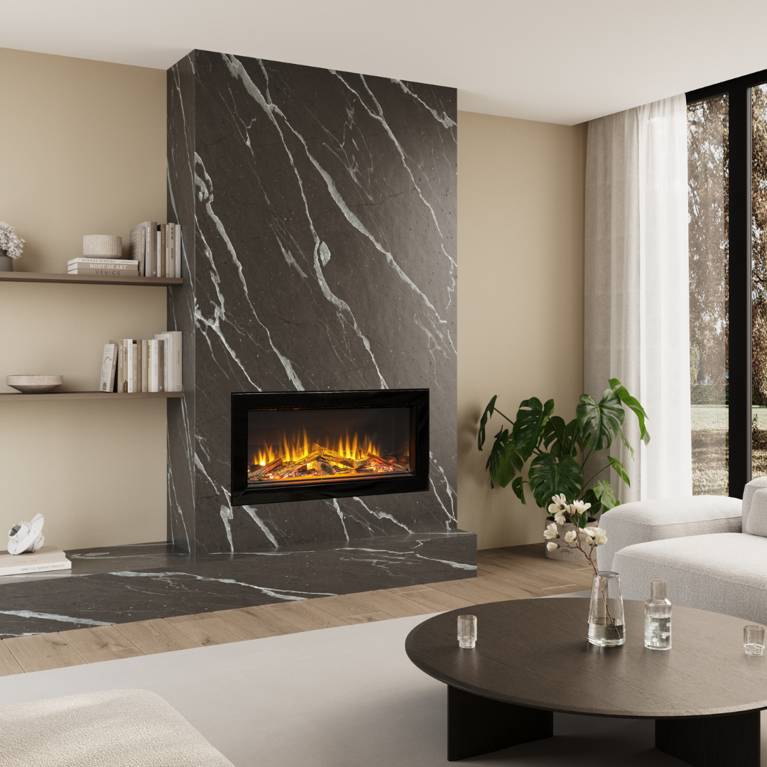 The iRange Deep is a highly versatile electric fire designed to suit modern interiors where flexibility and visual impact are key. Perfect for media walls, room dividers and feature walls, it offers a deep, immersive flame display combined with cutting-edge smart technology and exceptional customisation.