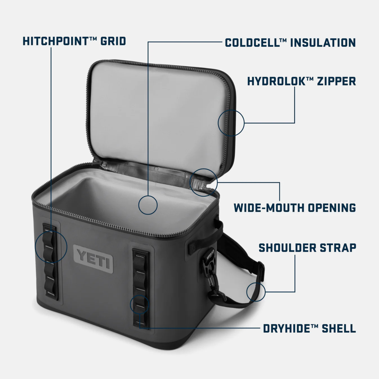 The weekend is calling, so pack up your Hopper Flip® 18 and head for the hills. With more capacity than the Flip 12, it’s built for larger hauls and longer expeditions. Take your lunch while you work for your dinner, and keep a couple of cold ones ready to kick back with after. The Hopper Flip® 18 is durable, leakproof, and versatile thanks to the HitchPoint™ Grid for tools and accessories. And like all YETI® Coolers, it’s equipped with superior insulation to keep the cold in for days.