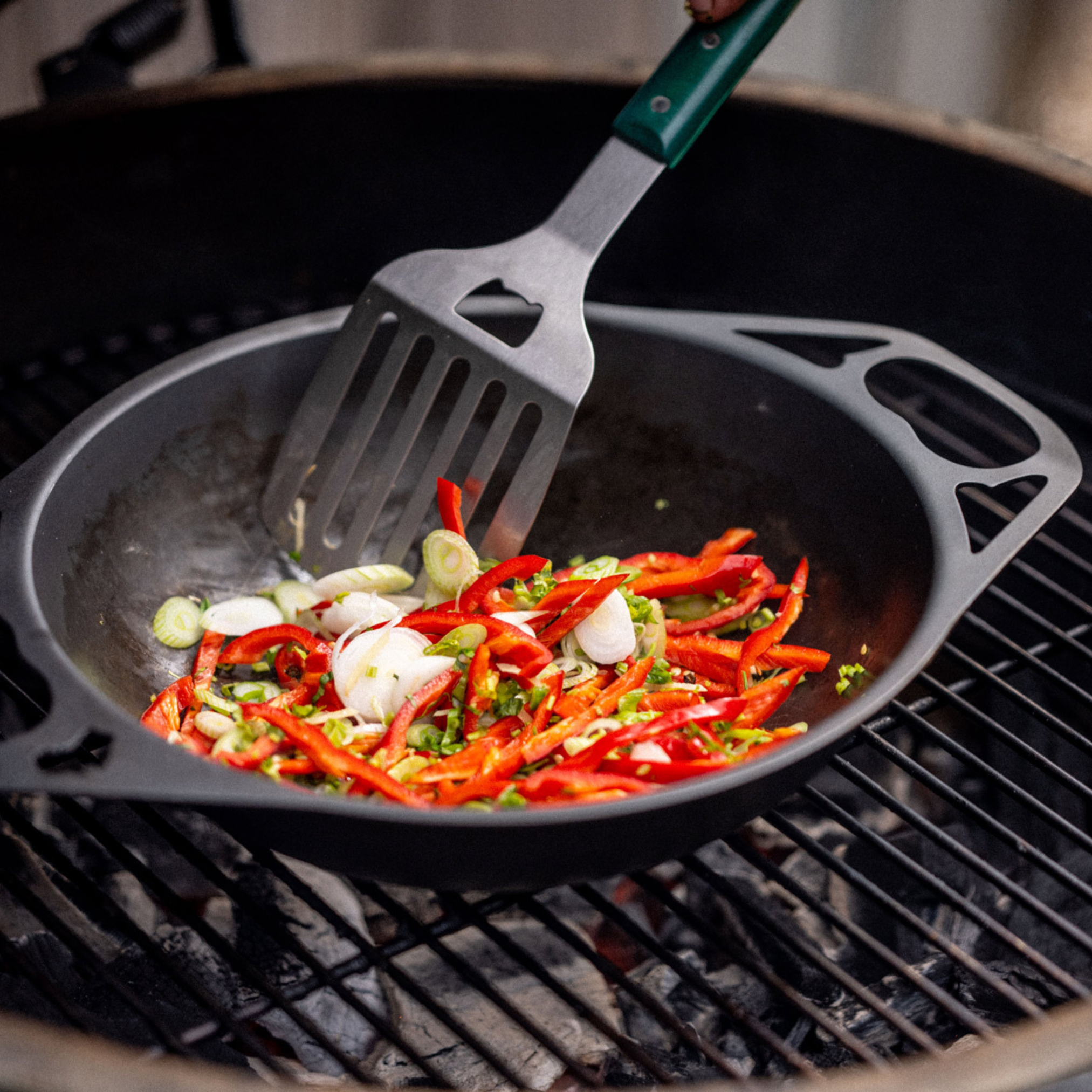 Handmade in Australia, each wok is formed from a single sheet of iron - no joins, rivets or welds - then seasoned with rice bran oil to create a tough, natural non-stick surface that only gets better with time. Free from toxins, heavy metals, and synthetic coatings, it’s built to last for generations, whether used indoors or out.