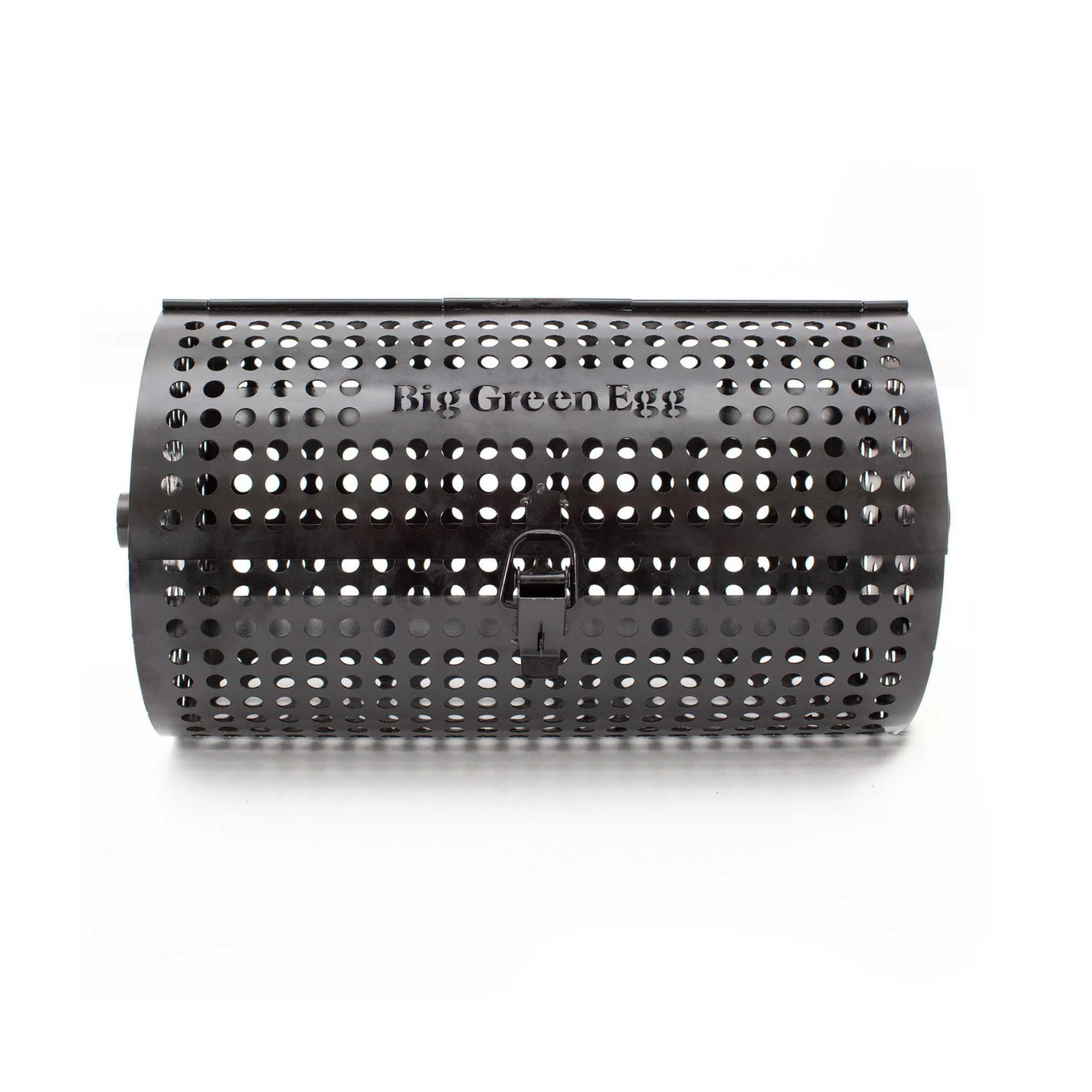 This durable, non-stick, coated steel tumbler is a perfect addition to the Big Green Egg Rotisserie.
