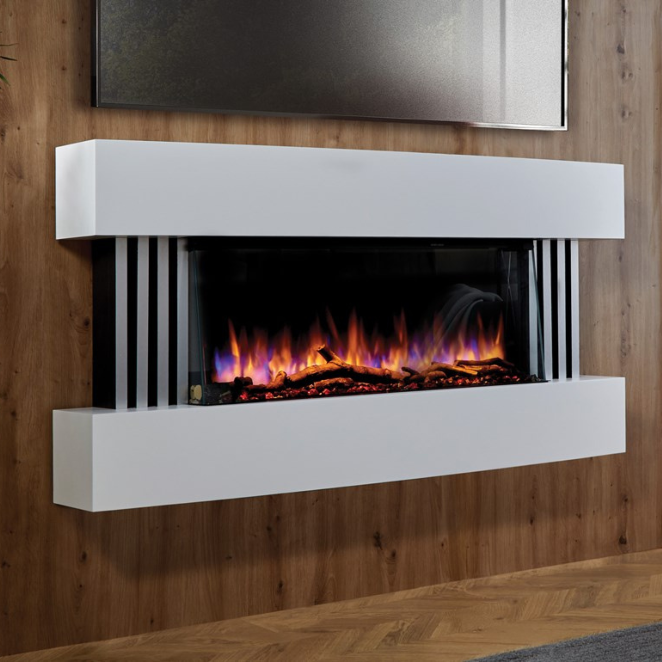 Choose from either floor standing or wall mounted to complement your interior. The mirrored plinth on the floor standing option gives the illusion the fireplace is mounted to the wall.