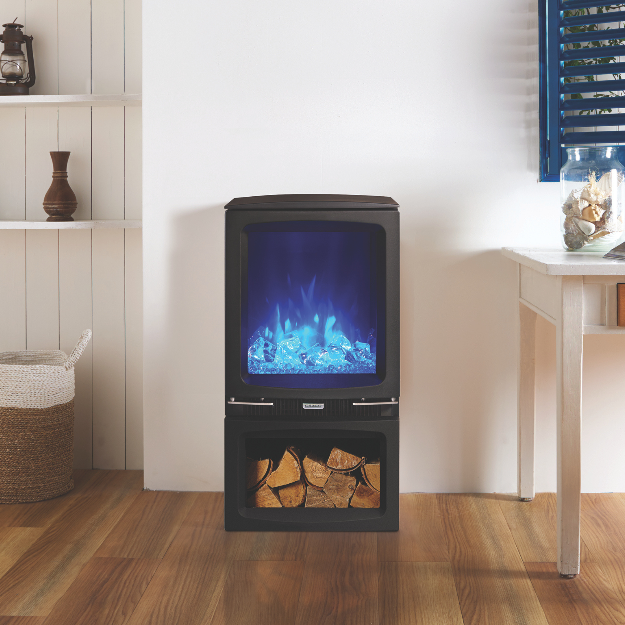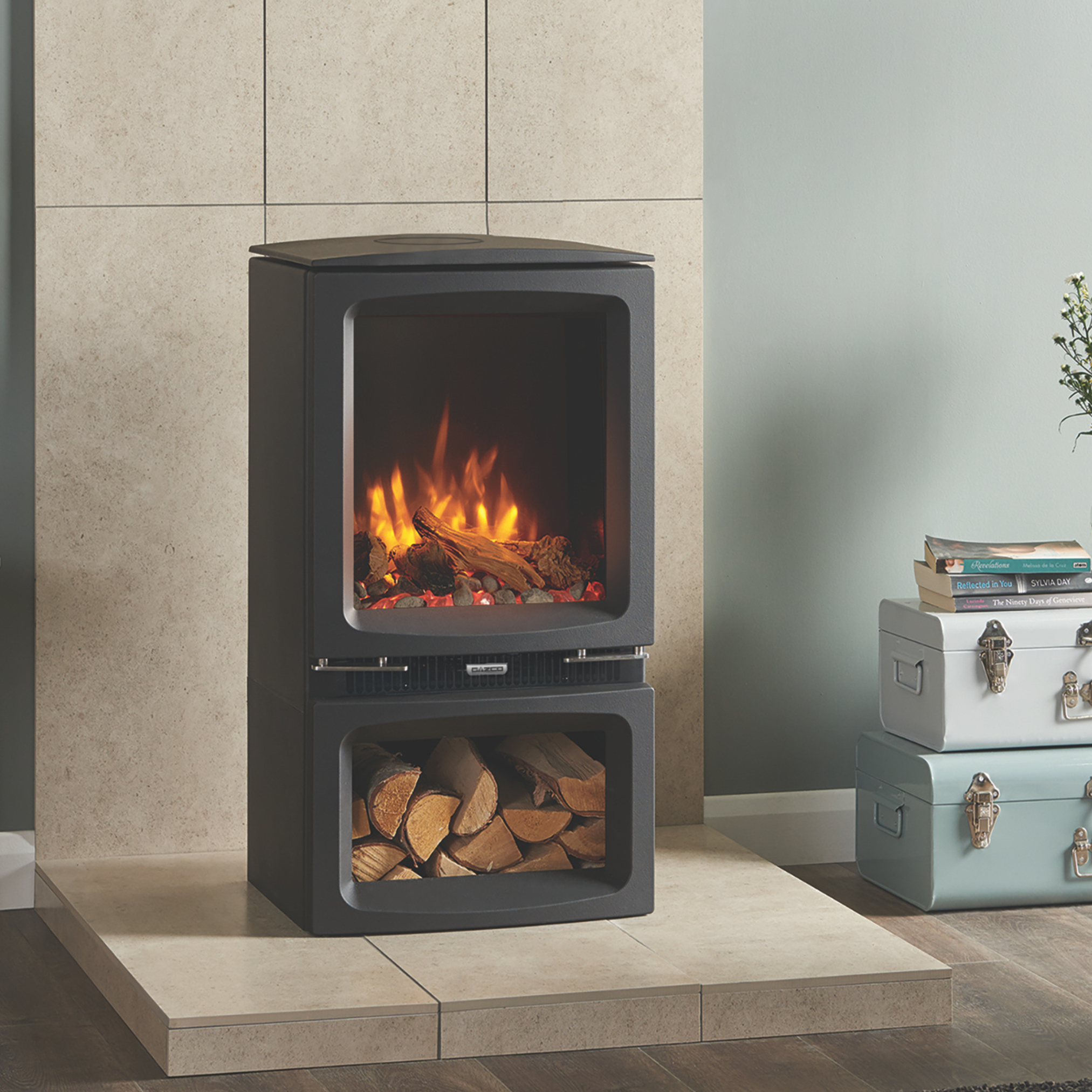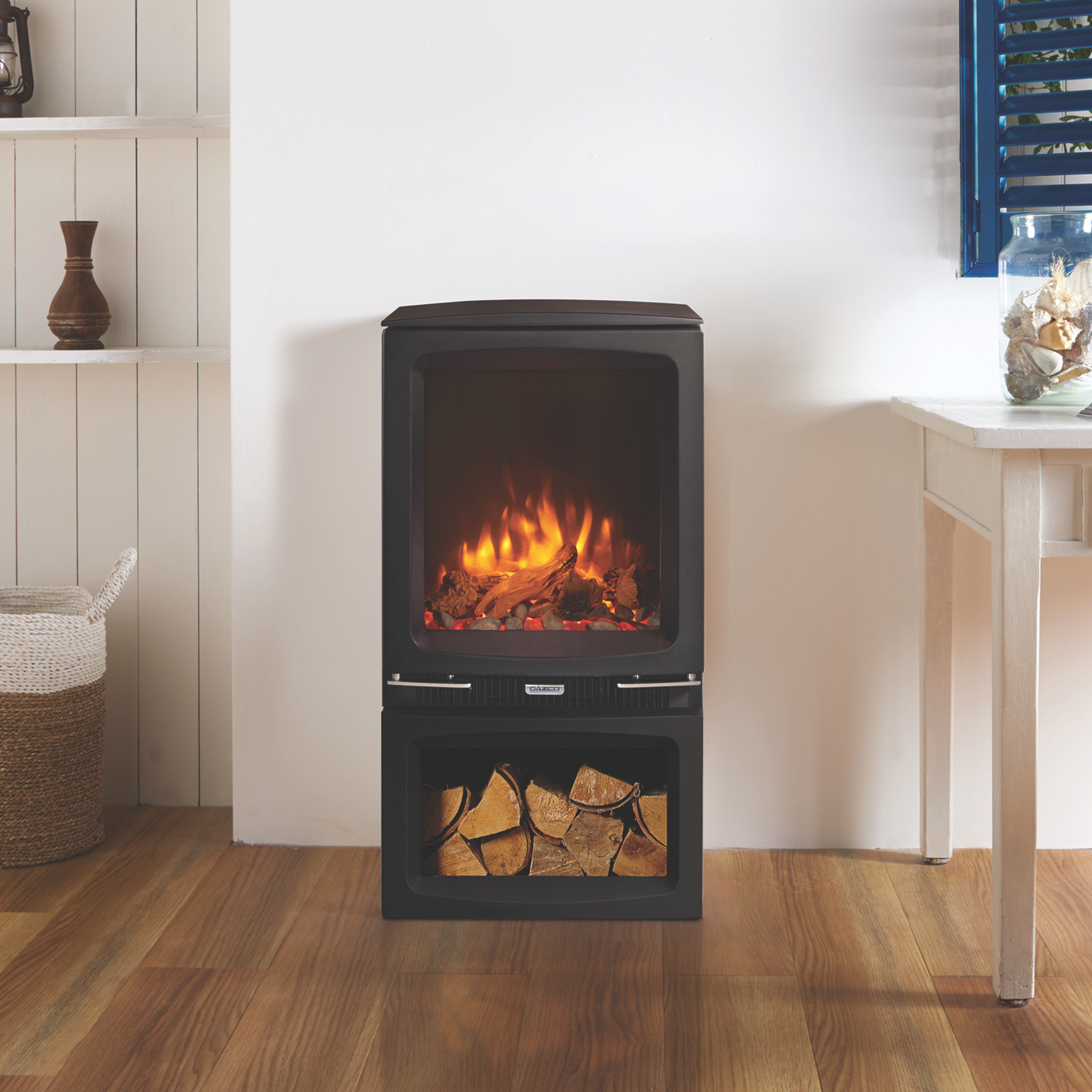 The Vogue Midi electric stove is offered in two models including a plinth and taller Midline log store version. A choice of fuel beds including realistic logs, pebbles & crystal-effects come with each electric stove letting you mix and match to create a bespoke display. Gazco’s Programmable Thermostatic Eco remote provides complete control over this stove’s visuals as well as allowing you to schedule heat output to suit your lifestyle.