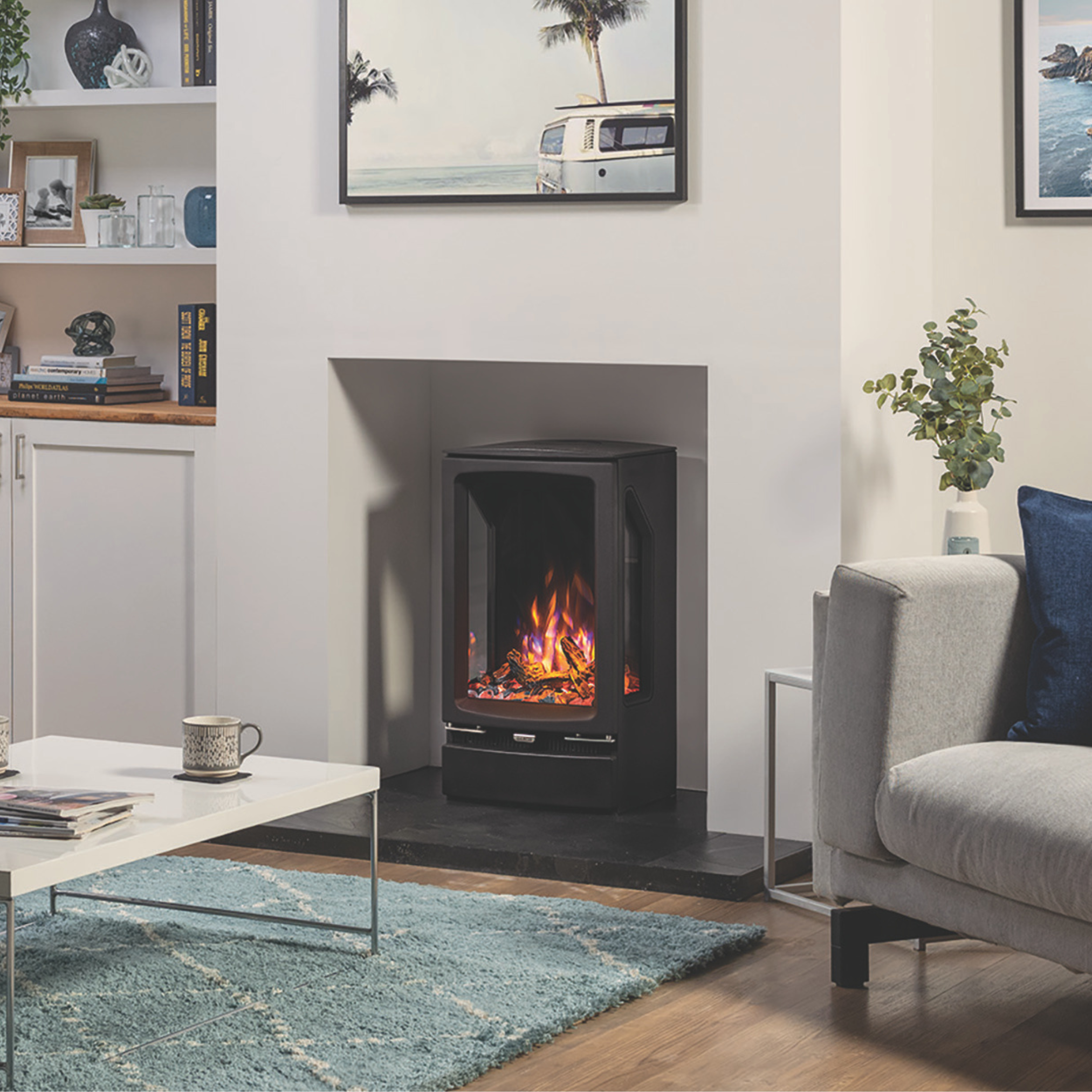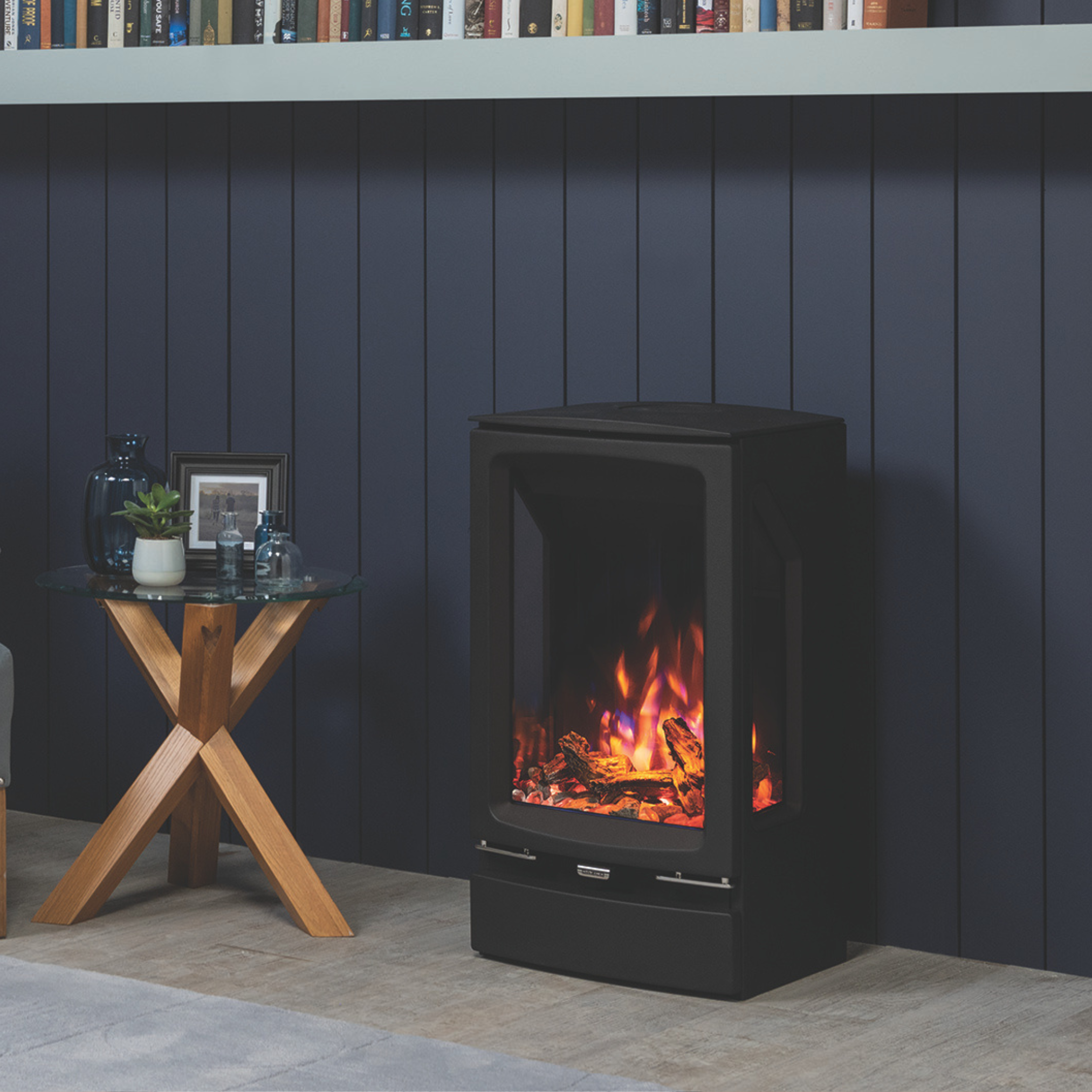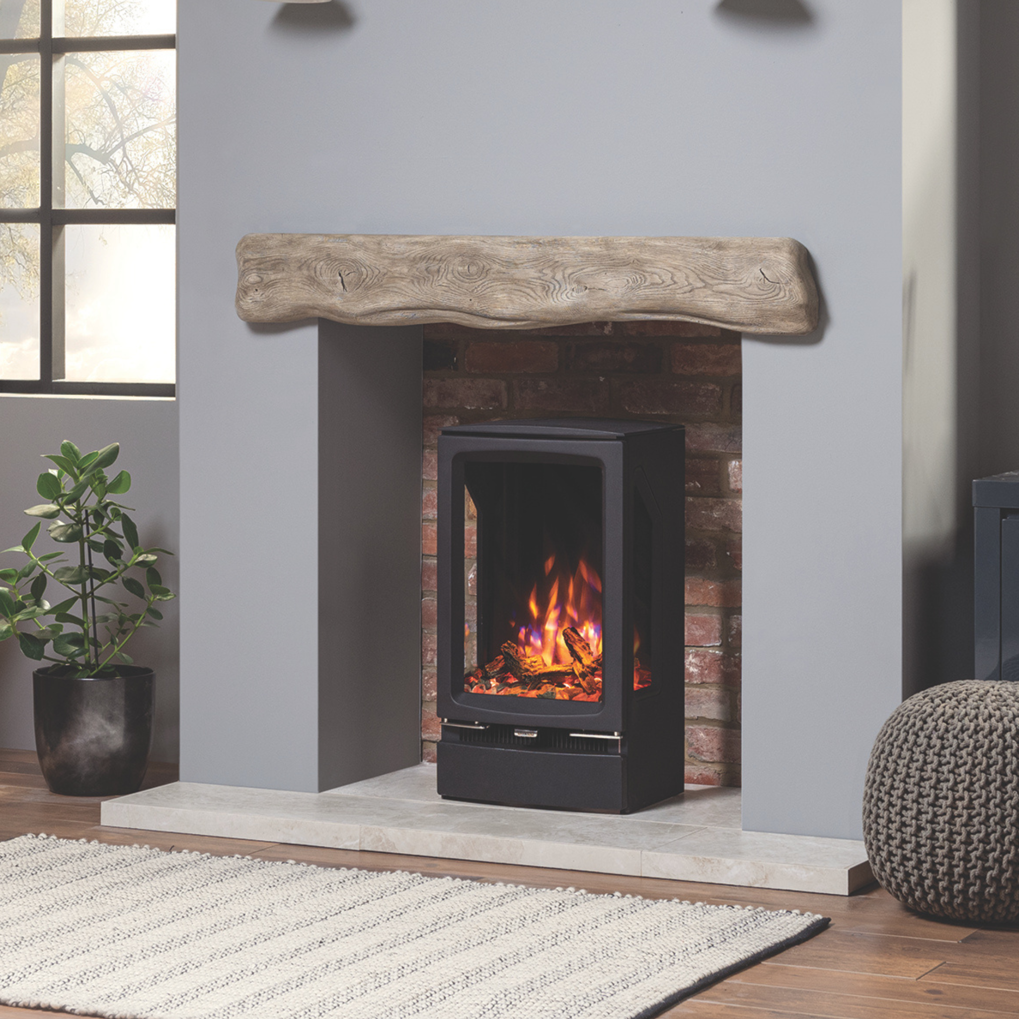 The Vogue Midi T electric is offered as a plinth-mounted stove or in Midline log store versions, which can be filled with logs to enhance the wood burning aesthetic. Alternatively, the wall-hung version creates a floating installation for a strikingly modern look.