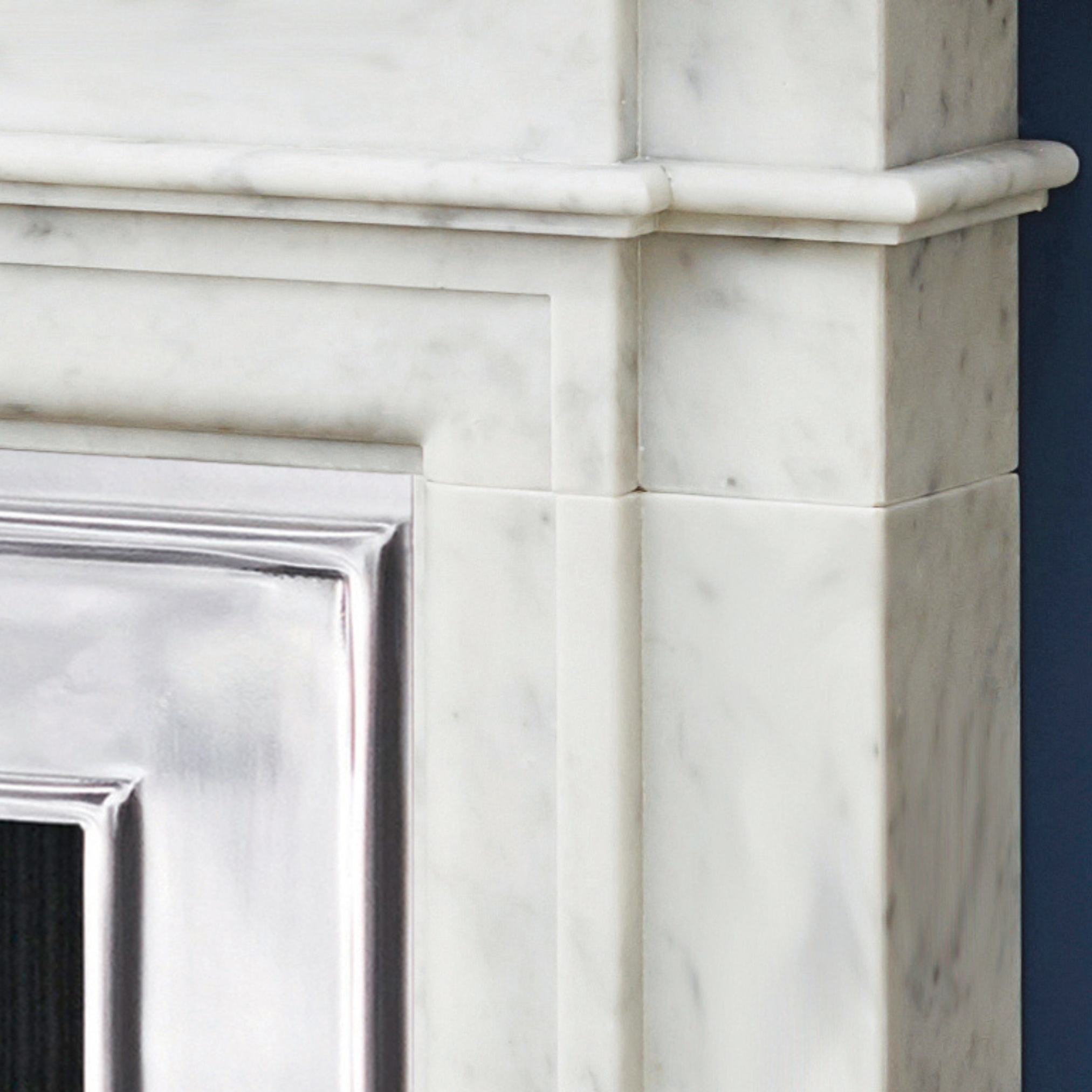 Carrara Marble paired perfectly here with the Capital Classic Polished Fascia, Black Reeded Chamber and Danbury Firebasket.